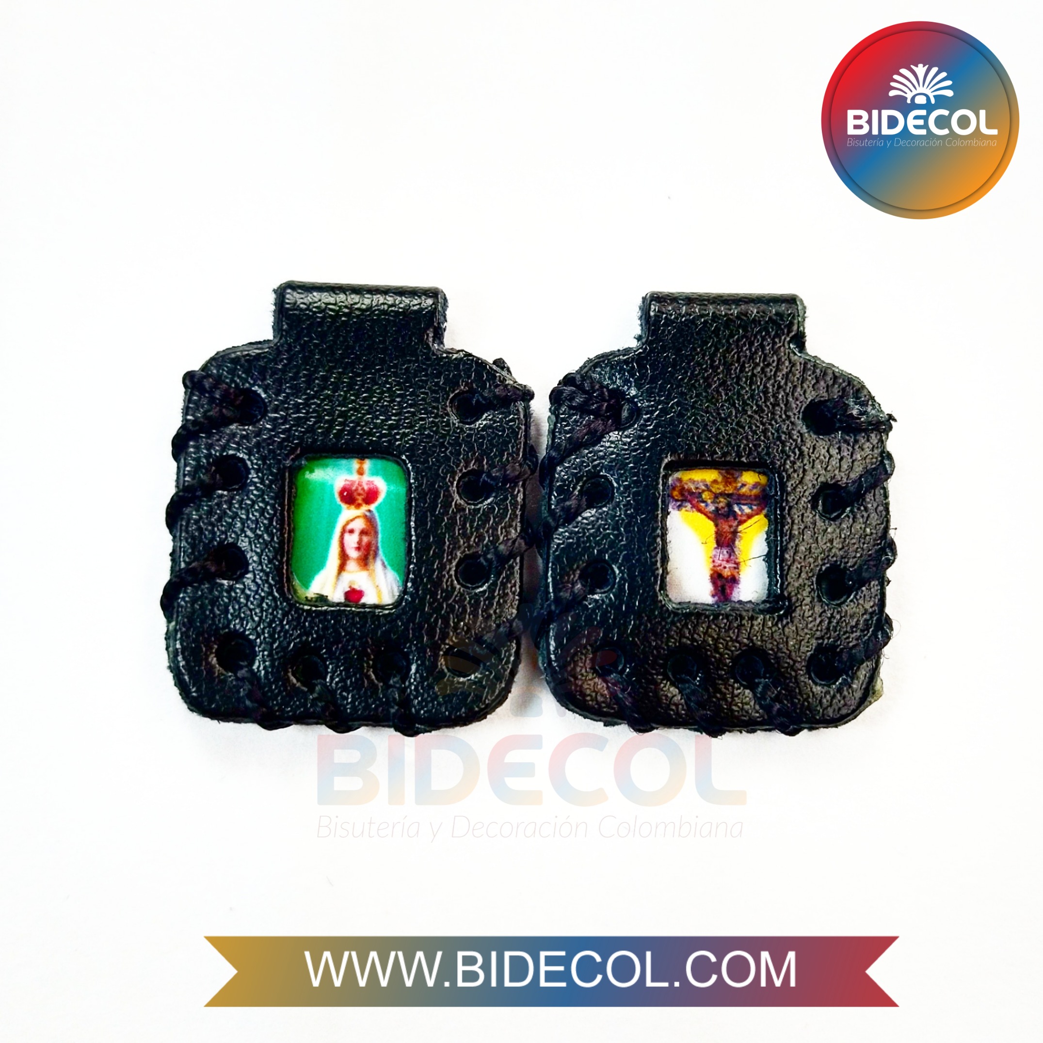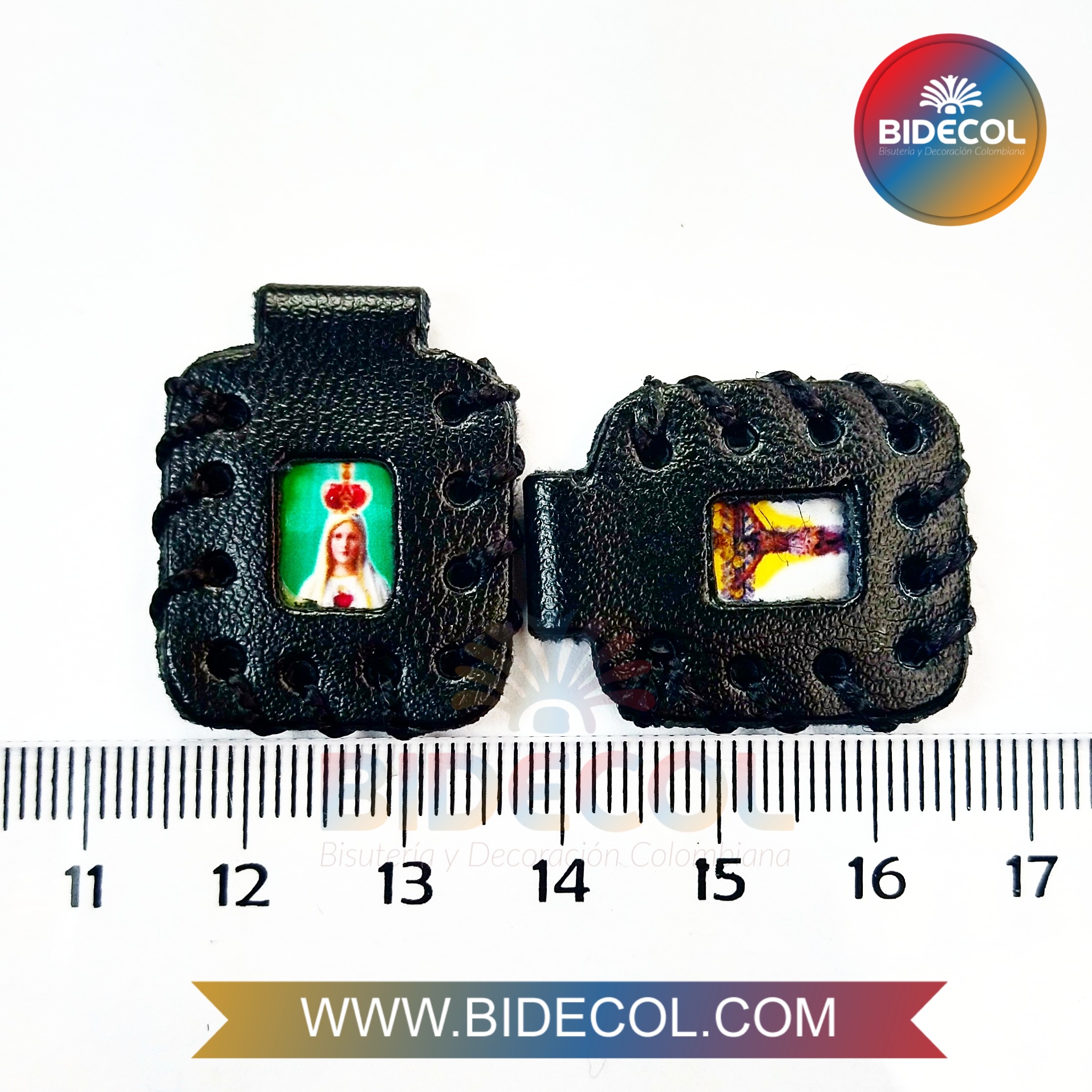 Escapulario Mediano Doble Negro 2.7cm Virgen de Fatima/Señor de los Milagros x 2und, utilizado para la fabricación de accesorios, pulseras, collares, escapularios, entre otro tipo de manualidades.