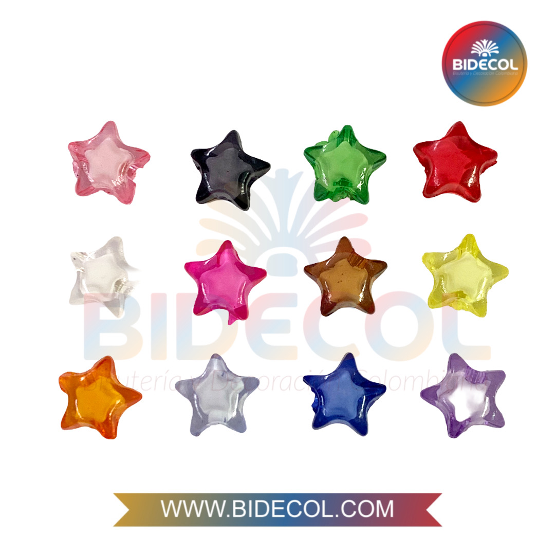 Nombre: Estrellas en Acrílico Tipo Pasador 1.3cm Multicolor x 12und